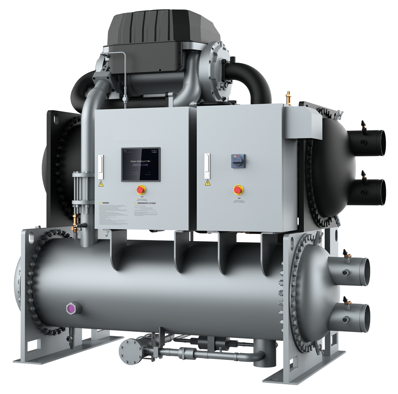 Ключевая особенность MDVL-CWG130EV(X) — центробежный магнитный компрессор с активными магнитными подшипниками. Вал компрессора удерживается электромагнитным полем без механического контакта, поэтому в конструкции отсутствует масляная система, снижается трение и уменьшается износ узлов. Такое решение повышает эффективность холодильного контура и делает серию MagBoost Apex особенно актуальной для объектов с высокими требованиями к надёжности оборудования.